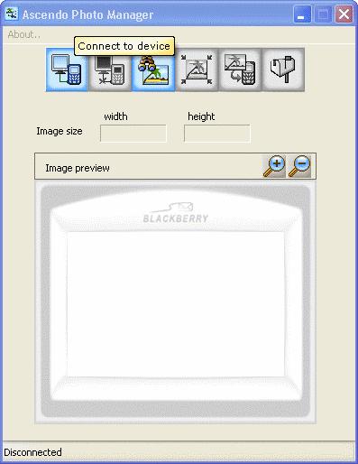 BlackBerry verbunden sind, erkennt die Ascendo Photos Desktop Software automatisch die Bildschirmgröße und passt das Fenster des Suchers an.